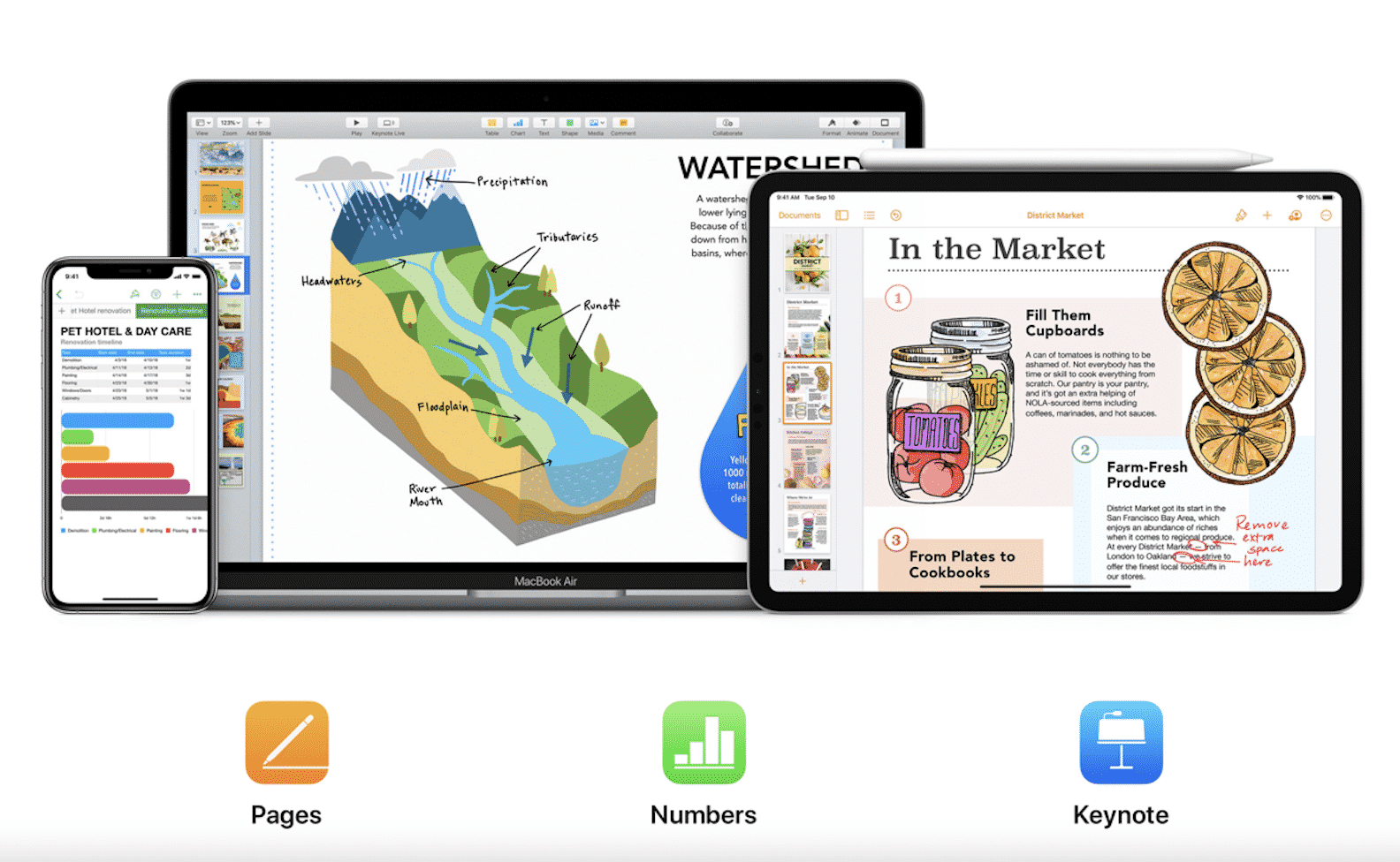 Apple has updated its iWork app suite that includes Keynote, Pages and Numbers.