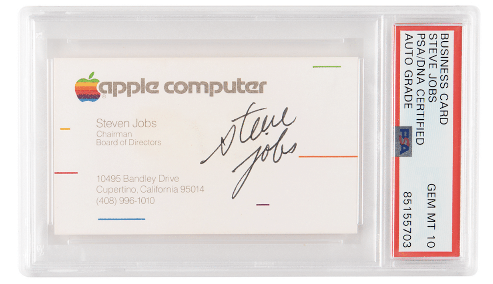 A business card with Steve Jobs’ signature recently fetched for $181,183 at an auction.