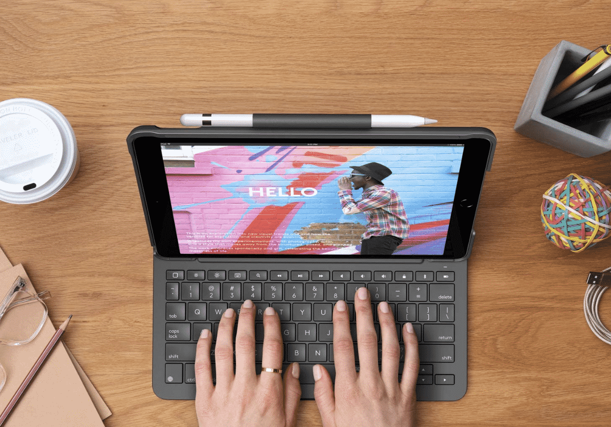 The Logitech iPad Slim Folio Keyboard Case acts as a keyboard accessory and protective tablet cover in one. Open the case up and you get a laptop-style keyboard with iOS shortcut keys. Connectivity is done via low energy Bluetooth and ensures hours of productivity as you type up emails, responses and written content.