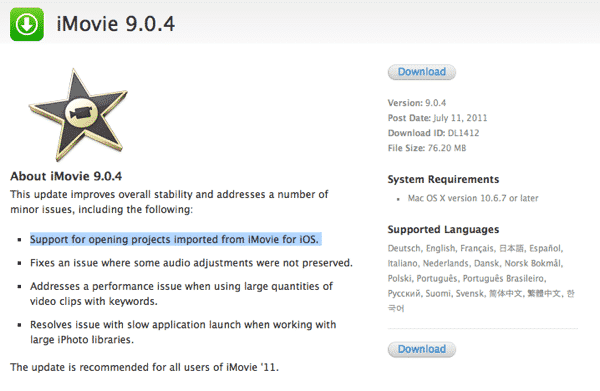 Apple has released an update to iMovie ‘11 for Mac OS X…