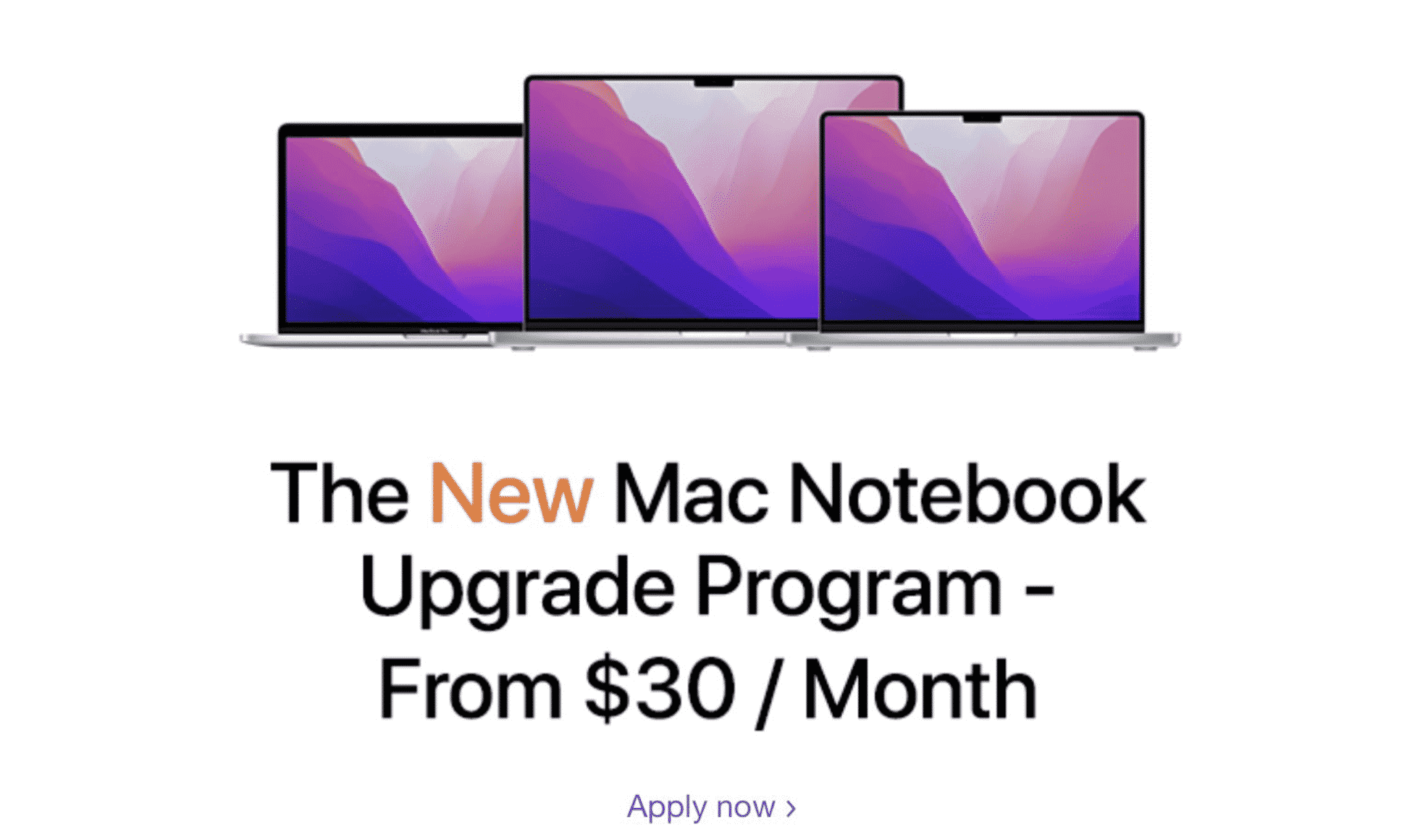 In partnership with CIT, Apple has opened a Mac Upgrade Program which allows Apple Business Partners to obtain and distribute 13 inch MacBook Pro, 13 inch MacBook Air, 14 inch MacBook Pro and 16 inch MacBook Pro models to their staff at 3% of retail price in monthly installments.