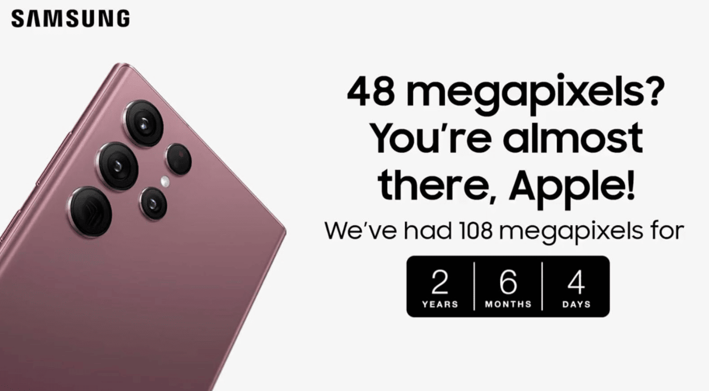 The ‘What the Flip, Apple?’ was sent out via Twitter and showed off the Flip phone and how long it’s been in the market. The second, titled ‘What’s the hold on the Fold, Apple?’ has more or less the same nature, while the last maintains how Samsung has a 108-megapixel camera on its latest Galaxy S22 model compared to the iPhone 14’s 48 megapixels. The trio of ads are available to view on Twitter.