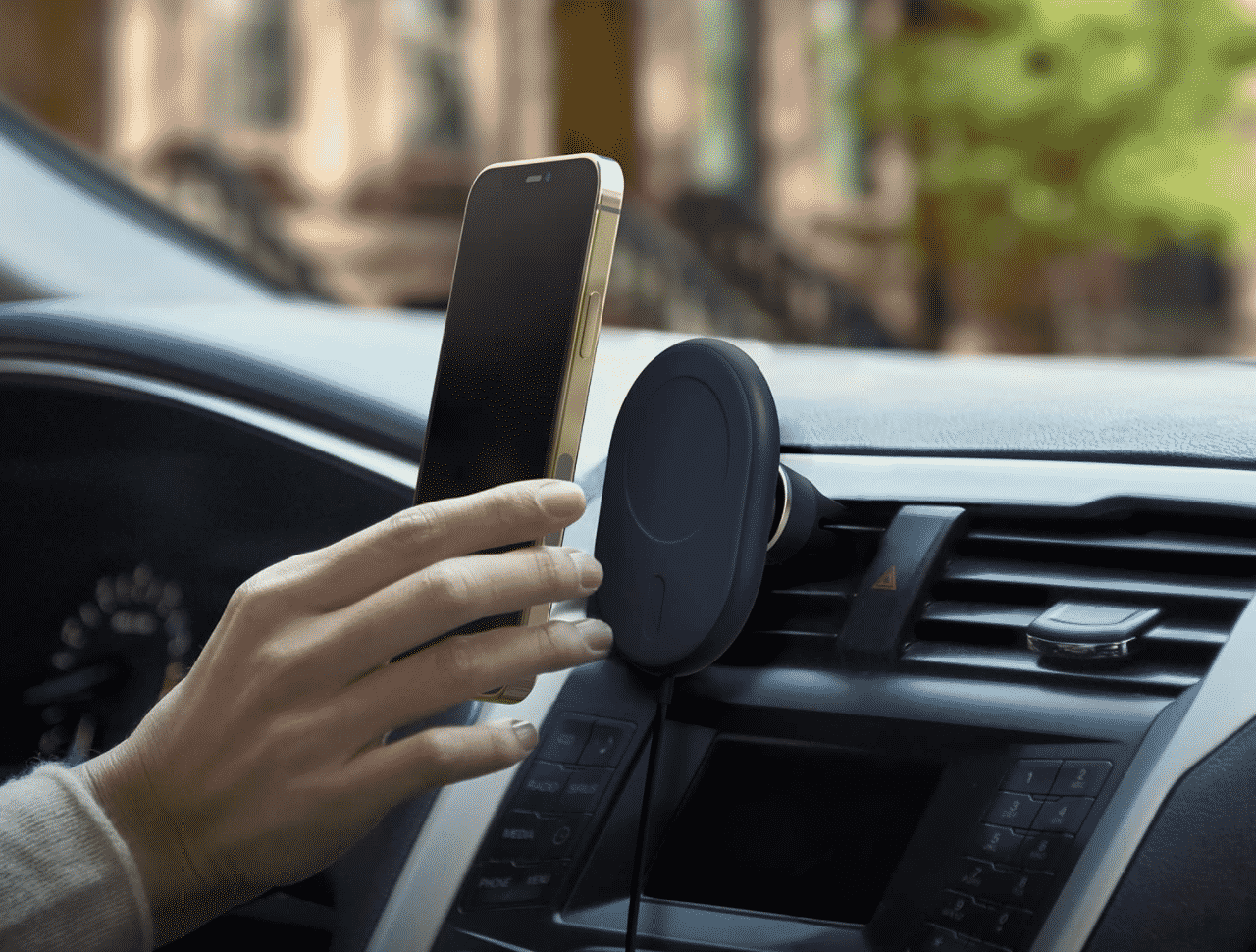 With MagSafe you won’t have to worry about fumbling with attaching your phone- just align the magnets and let go so you can enjoy hands-free phone navigation, calls and more. Wireless charging is up to 7.5W and should be enough to fully charge your iPhone in an hour or two.