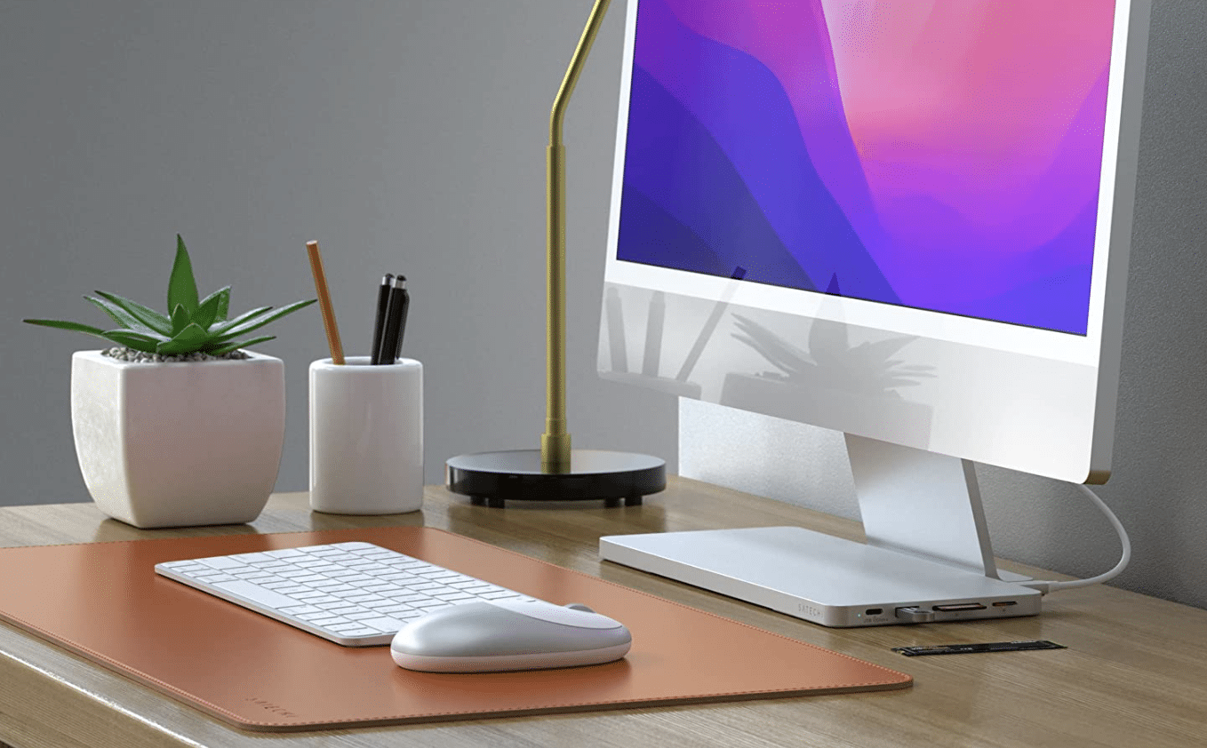 The Slim Dock fits perfectly on 2021 or 2022 24-inch iMac models, and it doesn’t really add any bulk at all. Be more productive and efficient with a clutter-free workspace with the Satechi USB-C Slim Dock today!