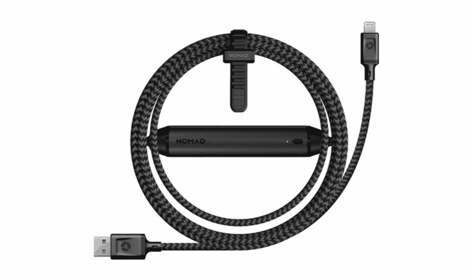 The Lightning cable from Nomad is made of super nylon 500D material woven into a ballistic pattern for added toughness. The MFi-Certified product comes with a 2,800 high-capacity battery within an aluminum housing, which can charge an iPhone 8 to 100%. There’s also a custom-designed liquid silicone rubber cable tie so you can wrap up the cable when not in use.