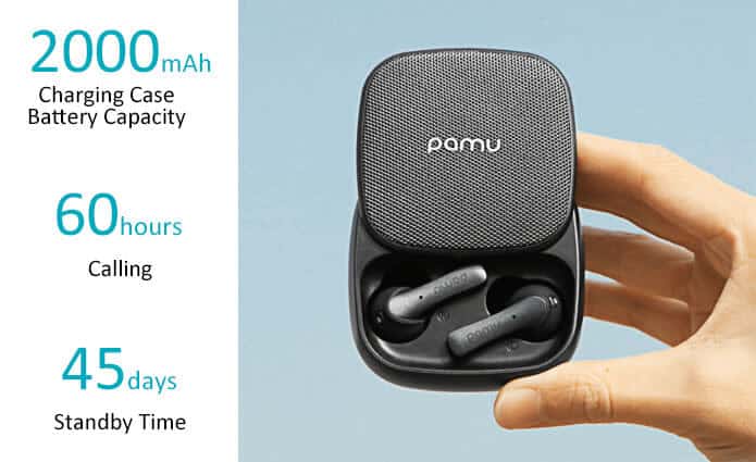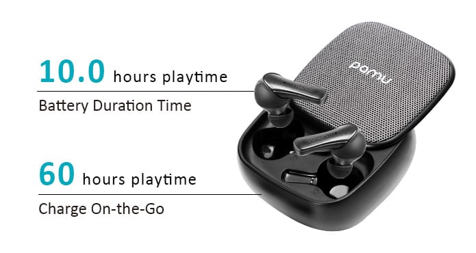 Just with a single charge, the PaMu Slide earbuds can give you over 10 hours to playtime. With the portable charging case, you can charge your earbuds up to 5 times.