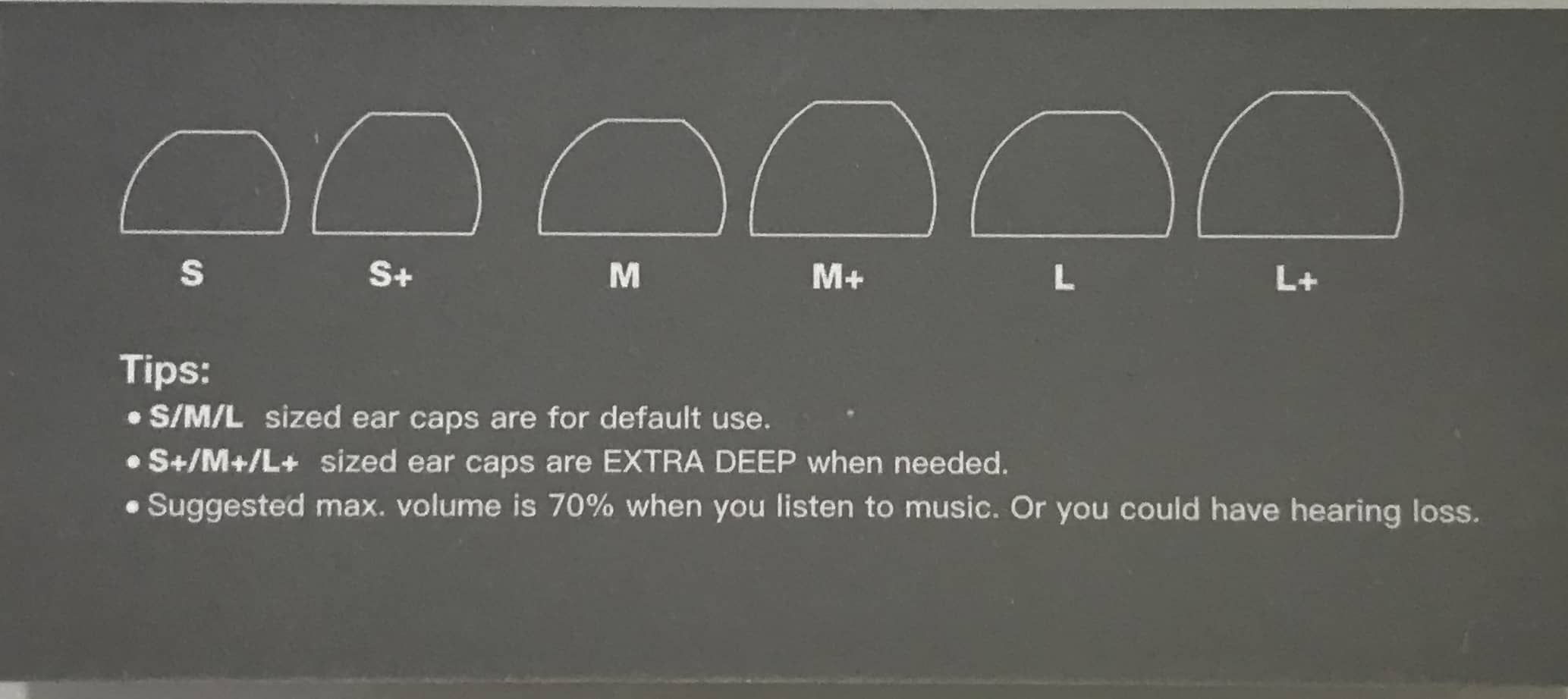 In case the default ear caps are too small or too big, there are many different size ear caps which you can use.