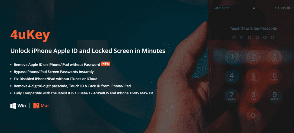 Remove iCloud Account & Apple ID. 4uKey can remove four- or six-digit passwords, Touch ID and Face ID locks.